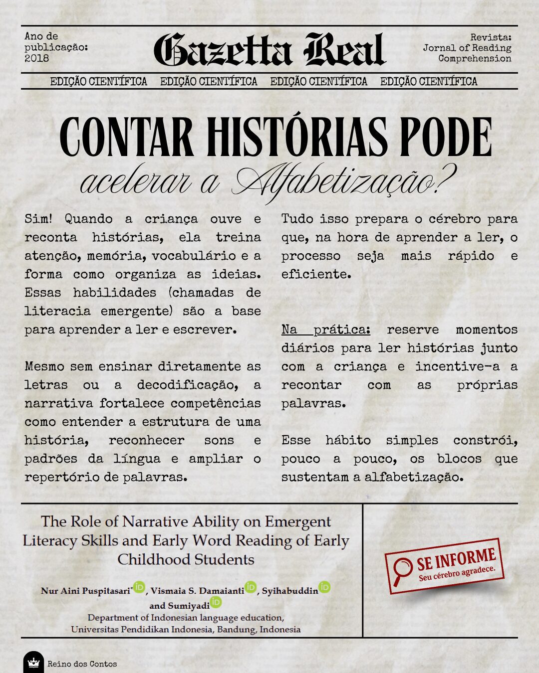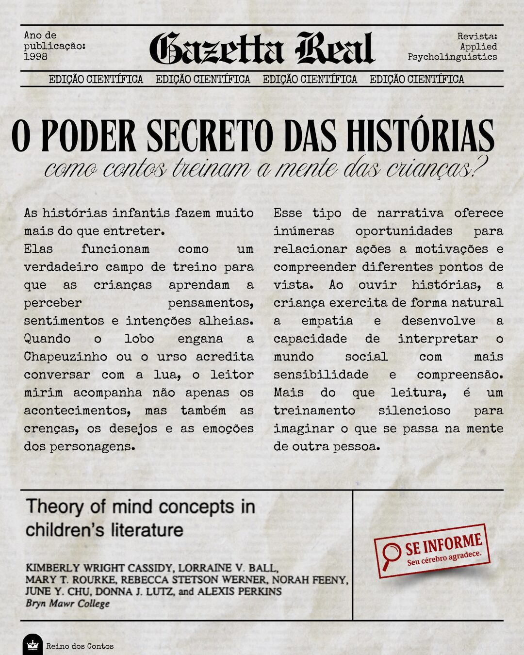 O Reino dos Contos é um espaço onde a linguagem, imaginação e ciência se encontram. Aqui, as narrativas não são apenas histórias — são pontes que ligam o mundo interno da criança ao seu desenvolvimento, com especial carinho pelas crianças neurodivergentes e por aquelas que precisam de mais escuta, mais tempo, mais magia.